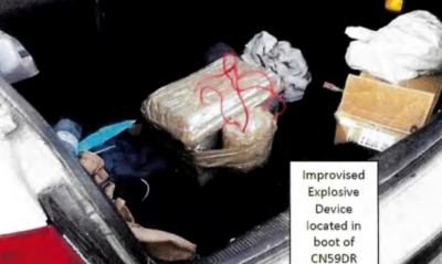 Un artefacto explosivo improvisado localizado en el maletero del vehículo CN59DR, que, según un documento judicial, se cree que fue utilizado por Sajid y Naveed Akram, autores del tiroteo durante una celebración judía de Hanukkah en Bondi Beach el 14 de diciembre (FOTO: Policía de Nueva Gales del Sur)